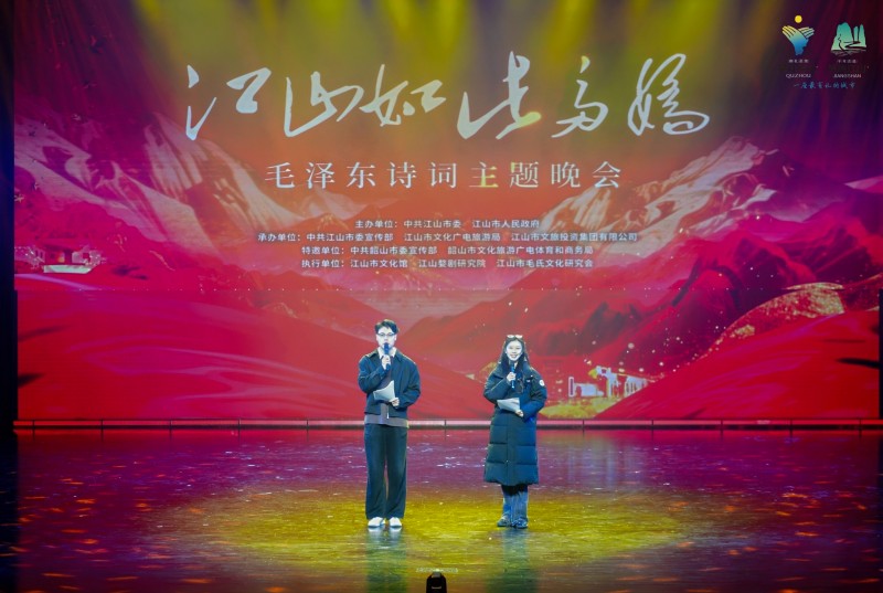 12月10日晚,“江山如此多娇”毛泽东诗词主题晚会暨2025年江山市毛氏文化旅游系列活动开幕式于江山婺剧研究院剧场举行。